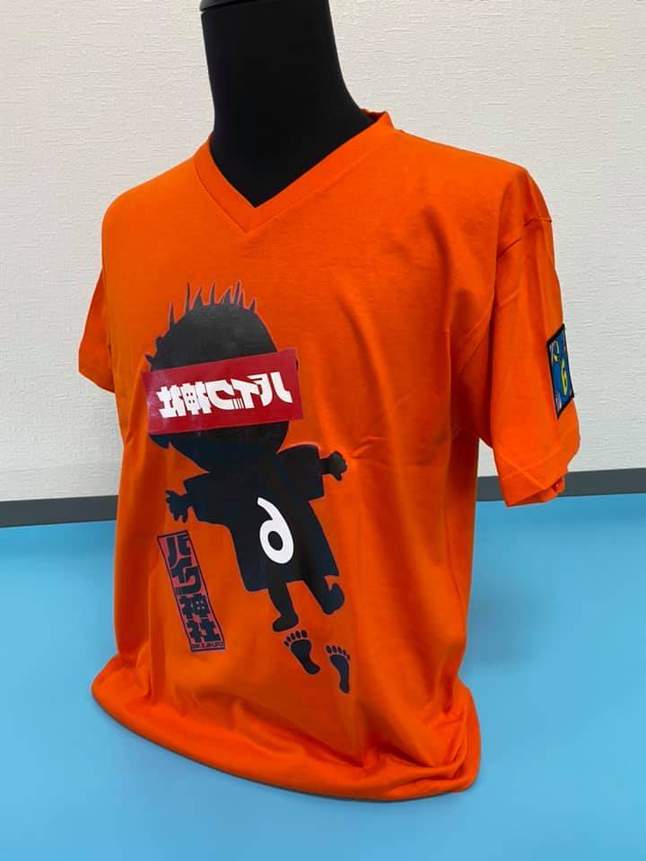 208 影 オレンジ V首半袖Tシャツ Lサイズ