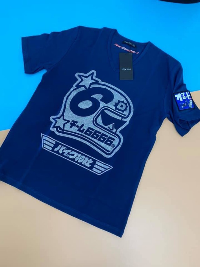 209 RR きらきらヘルメット 紺 V首半袖Tシャツ XLサイズ